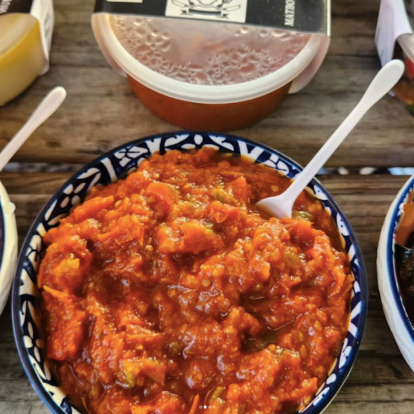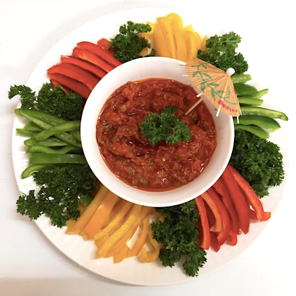 Mixed coloured peppers with Matboucha dip - R450