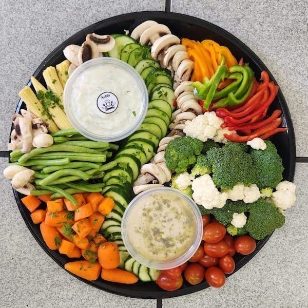 Mixed vegetables with Hummus and Tzatziki dips - R550