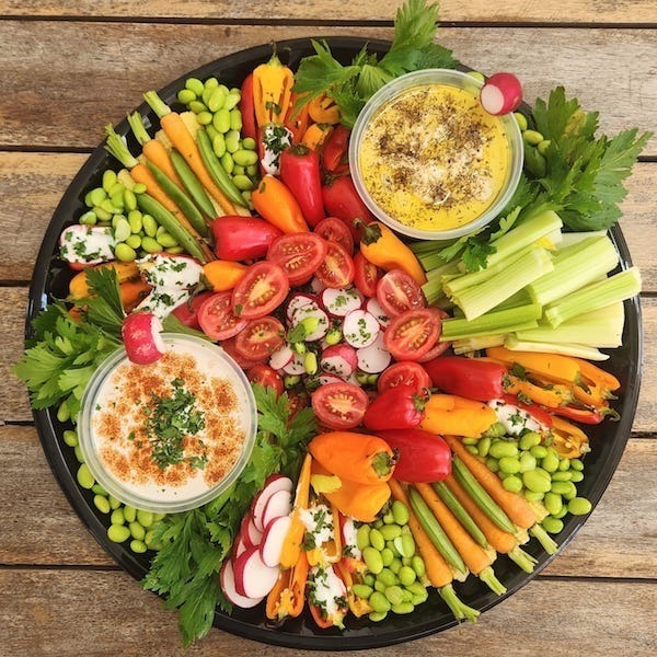 Mixed vegetables with Hummus, Tzatziki & Tehina dips - R750